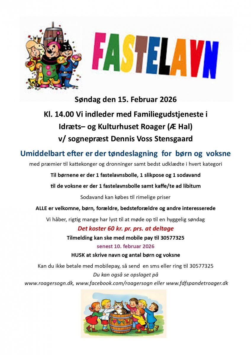 - Fastelavnsgudstjeneste og tøndeslagning