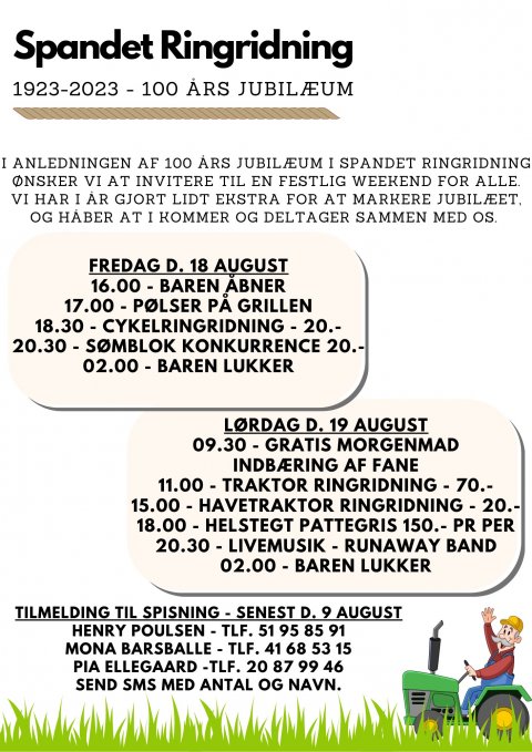 Vi dyster i havetraktor, cykel og traktor. Som altid vil der i festteltet være gode tilbud på mad og drikke.